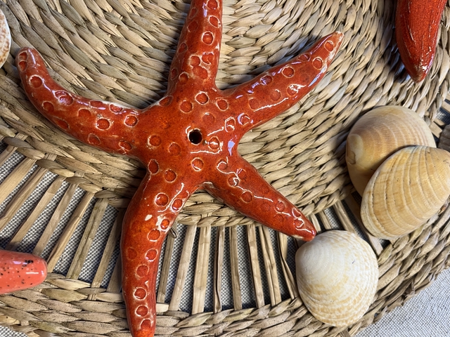 Etoile de mer à poser, suspendre ou accrocher au mur par exemple grâce à son petit trou central. 15cm